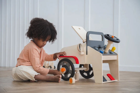 Wooden car motor mechanic set
