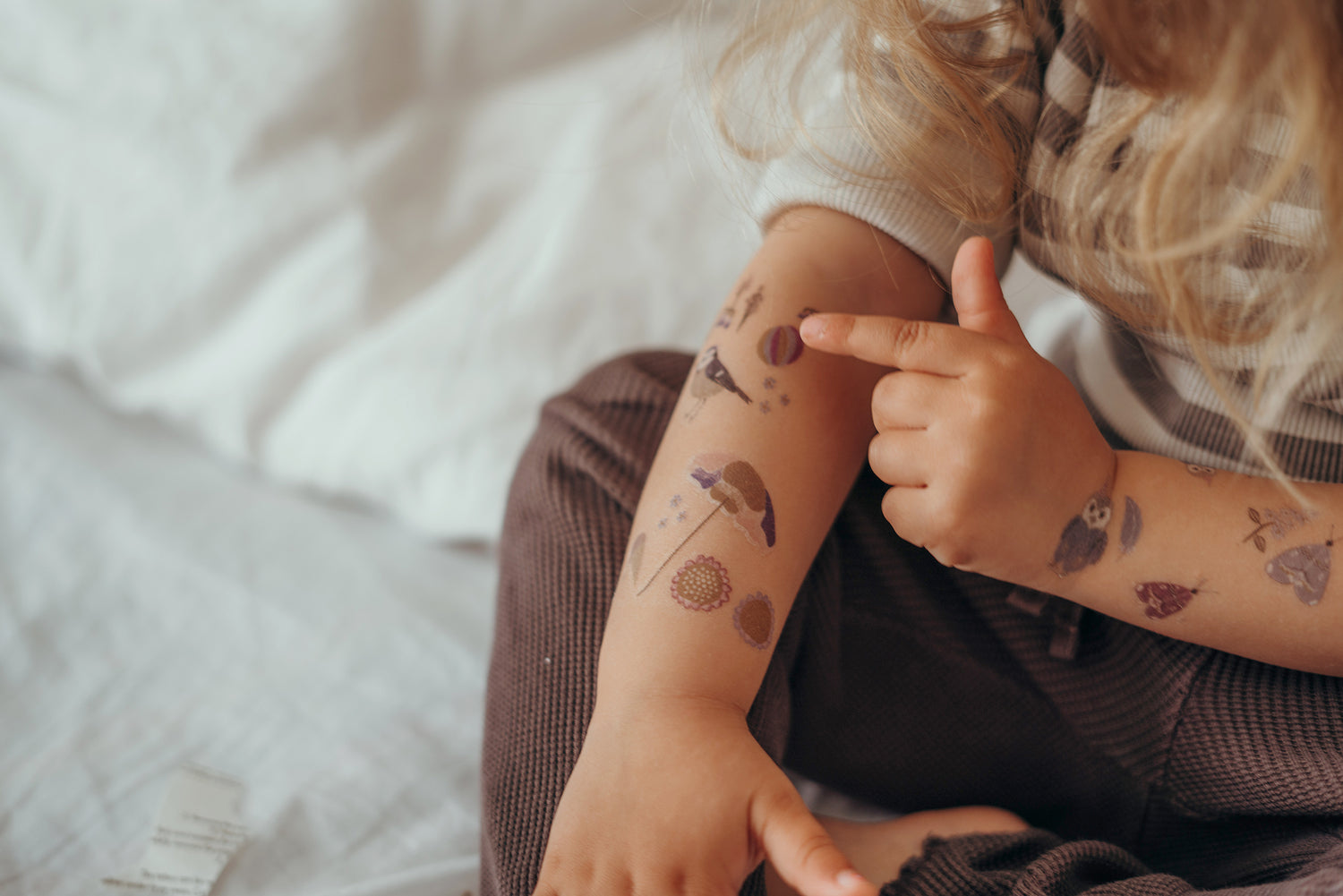Nuukk's founder, Andrea Hild, has collaborated with other illustrators to create this beautiful line of children's tableware and organic tattoos