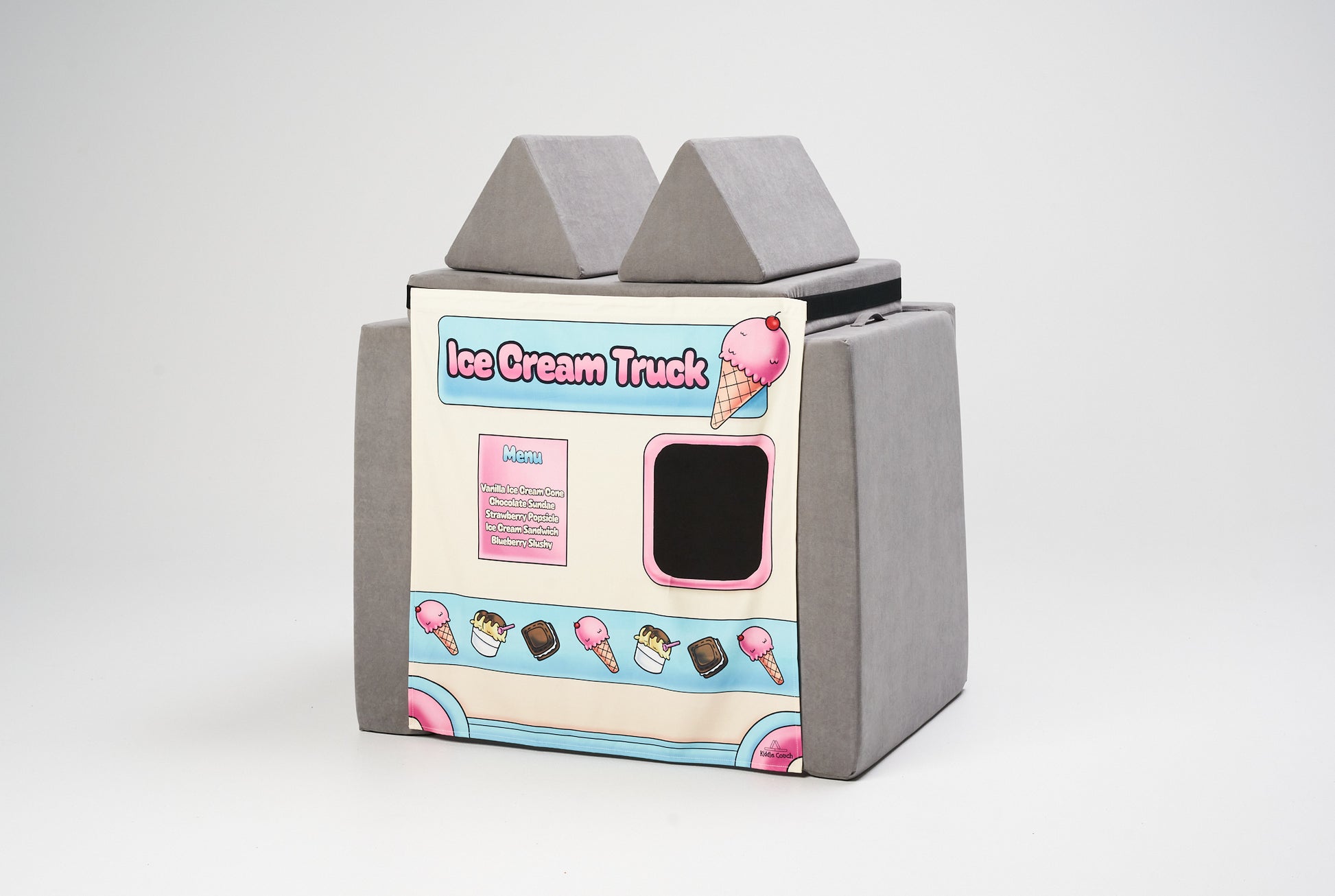 Ready to take imaginative play to the next level? With our Banner Pack, your Kiddie Couch can instantly transform into a Coffee Shop, Pizza Shop, Ice Cream Truck, Camper, or even a Hospital—endless adventures, all from the comfort of home!