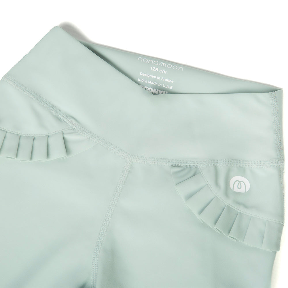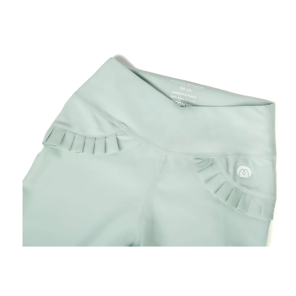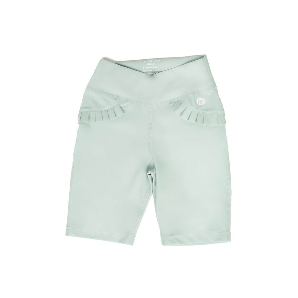 The Butterfly Shorts in green haze bring a fresh and elegant look to any activity. With their delicate ruffle details at the waist, these shorts combine style with comfort. Perfect for outdoor sports, beach days, or simply playing in the sun, their stretchy and flexible fit ensures she stays at ease through every adventure.