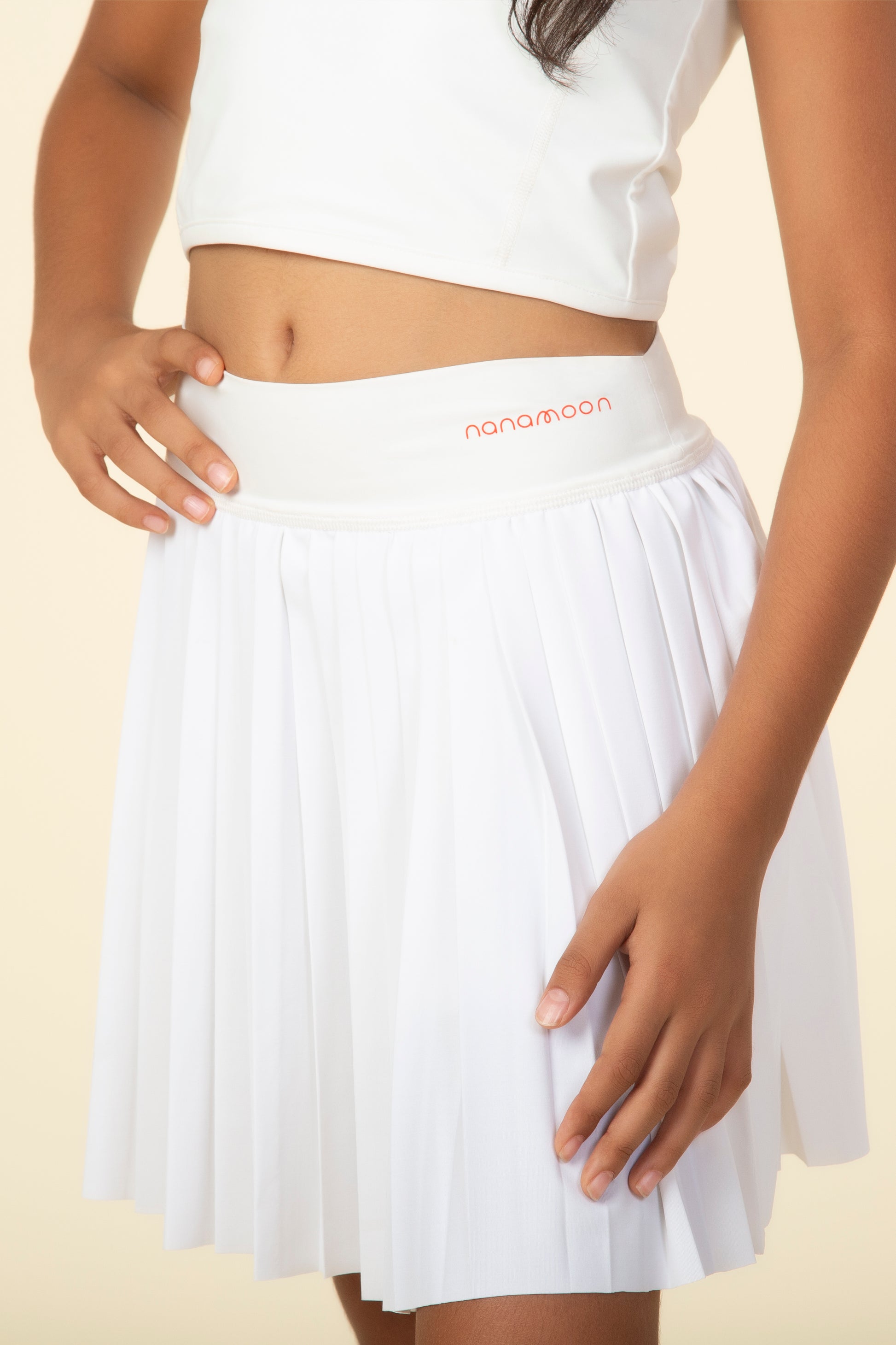 The Flow Skort in bi-color white & Fushia is inspired by the perfect skirt—versatile, stylish, and functional. Its pleated design and integrated shorts offer the ideal combination of elegance and freedom of movement. Whether she’s playing tennis, practicing golf, or expressing herself in everyday activities, this skort ensures comfort and confidence all day long.