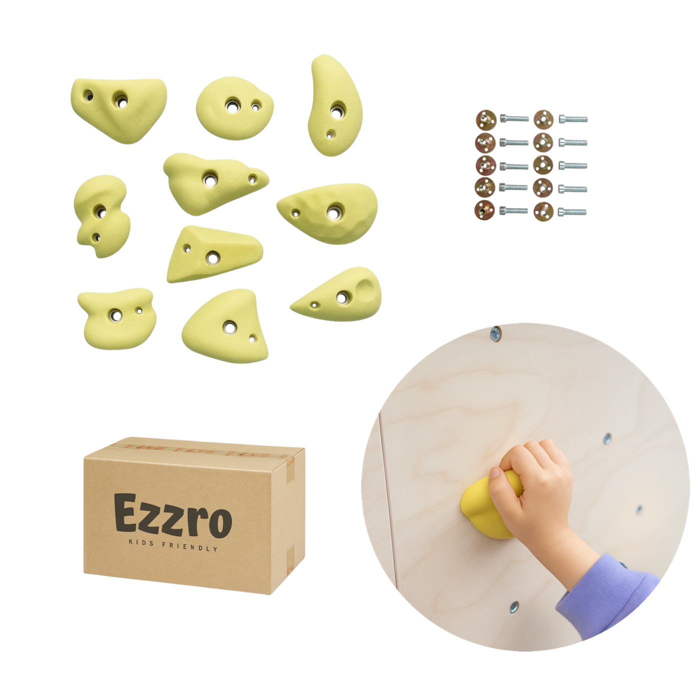 - Comes with 10 high-quality resin climbing holds in assorted shapes and colors